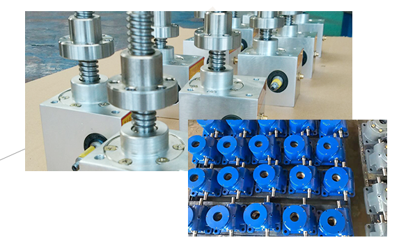 絲桿升降機直列安裝,采用單驅動源即可完成整條設備的聯(lián)動升降,...